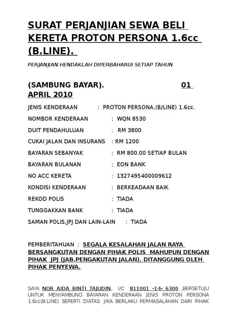 Contoh surat perjanjian sambung bayar kereta, cara buat surat perjanjian sewa beli kereta sambung bayar loan, contoh surat perjanjian beli .